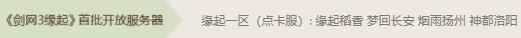 分别是:缘起稻香,梦回长安,烟雨扬州,神都洛阳。 四个服务器分别对应了当时的新手村和三大主城。 之后到底是像正式服一样的点月分离制还是目前更加流行的点月并行制,就要看正式上线后的消息了。 |