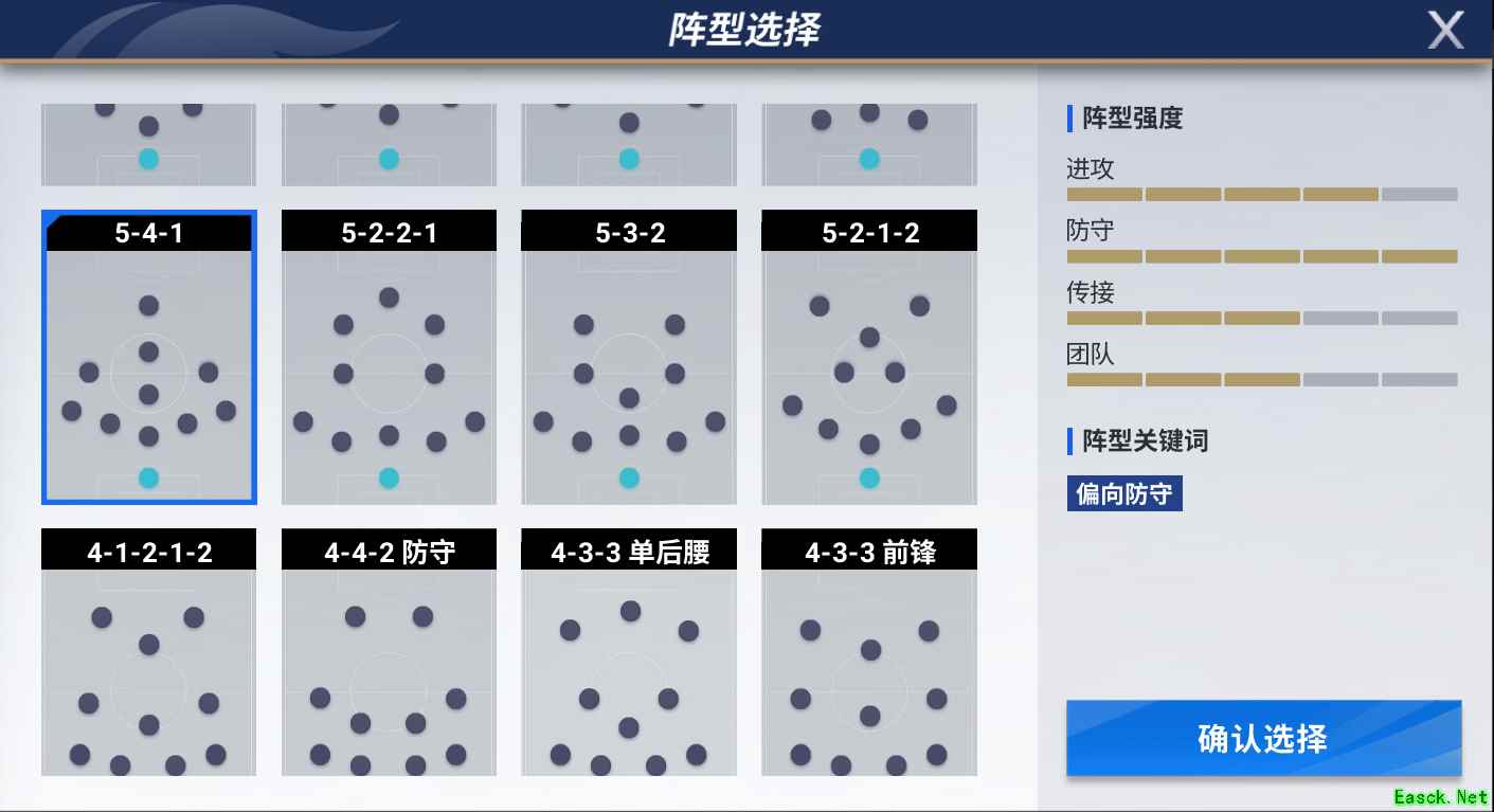 3.稳固防守5-4-1:如果你厌倦了传统的进攻打法,想试一试以静制动,那么你一定要试试这套5-4-1阵型。五后卫的存在可以有效保证球队在后场横向覆盖的面积,四个中场也不会过度削弱中场对于皮球的控制力。多达9名球员参与防守,让对方前锋望而却步,直塞被拦截、射门被封堵、中路争顶吃亏,对手想进球,几乎只能靠运气。该阵型进攻时,则要把握住对方进攻时展露的漏洞,往往能够通过一次精妙的直塞穿透对手整条防线,同时也可通过角球、任意球的战术配合进一步增加进球机会。