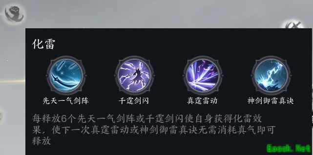 优先释放神剑御雷真诀,但是要注意释放时机,别在BOSS放技能时候释放 先天一气的CD是9.5秒,两层充能,但是CD并不独立计算,其实就是开场多放一次,每次先天一气+太极=引雷诀。