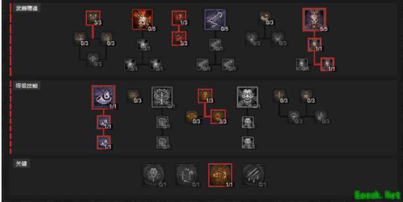 专精推荐 双手剑专精:解放双手武器选择会让你在拓荒的路上容易许多。 装备词缀选择 一般状况下,玩家在前期拓荒的时候只会打到稀有与传奇装备,以下是在选择装备时建议最优先考虑的词缀顺序: 1. 撕裂只能使用斩击武器来施放,因此只有你目前装备中的斩击武器的秒伤会影响撕裂的伤害,其他类别的武器则只会被其上的装备词缀给影响,也因此请至少装备一把斩击武器,并尽量选用高秒伤的斩击武器。 2. 伤害词缀:以这个流派来说,力量属性、核心技能增伤、爆击伤害、流血伤害、撕裂技能等级等等都是玩家可以优先考虑选用的词缀。 3. 防御词缀:优先考虑生命值上限、护甲值、伤害减免、强韧时伤害减免、来自流血怪物的伤害减免等等都是不错的词缀。 力量圣典威能&传奇特效推荐 攻击类: 期望之精华- 拓荒好用的精华,可以有效提升撕裂的伤害