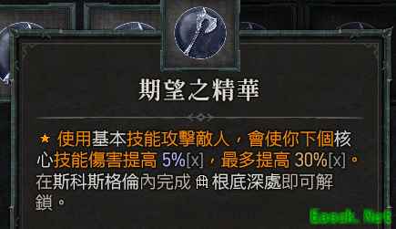 不从之精华- 野蛮人是一个天生护甲值就高的职业,因此堆叠额外护甲效果收益非常高,加上护甲值是目前游戏中较强势的减伤属性,非常推荐选用。