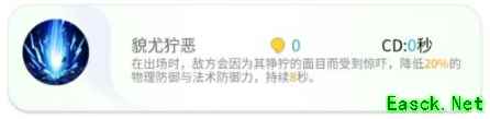 貌尤狞恶: 在出场时,敌方会因为其狰狞的面目而受到惊吓,降低20%的物理防御与法术防御力,持续8秒。