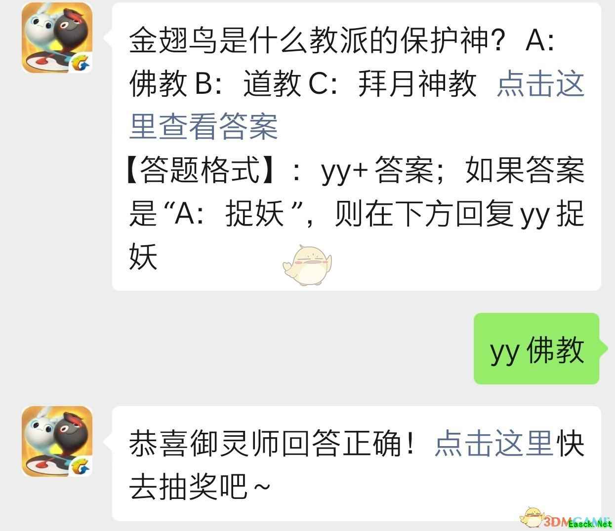 金翅鸟是什么教派的保护神?一起来捉妖11月20日每日一题更新了,各位玩家们应该还不知道答案吧,感兴趣的玩家们,下面就跟着小编一起来看看一起来捉妖11月20日每日一题的答案吧。 小编推荐:《一起来捉妖每日一题答案汇总》