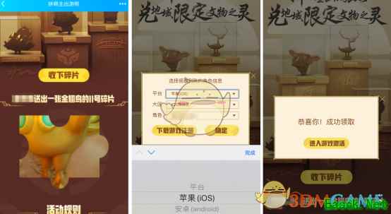 1、通过游戏帐号对应的社交渠道(QQ/微信)领取其他好友御灵师所提供的拼图碎片(每日仅可获得2块好友御灵师分享的拼图碎片,无法领取自己分享的拼图碎片) 2、点击进入好友分享的信息,点击【收下碎片】按钮后,选择对应的游戏区服和角色即可点击【确定】,碎片将会自动发送到游戏内