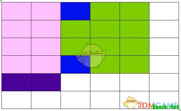 说完了外观建筑,再开看看一楼的内设布局是什么样的。 粉色是卧室的面积,绿色是客厅部分,深蓝是楼梯,紫色是门,淡蓝色是空余的部分转角可以放柜子。