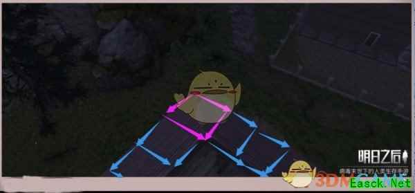 明日之后豪宅怎么建 首先来说这个房子的建筑结构,其实这套房子的结构是比较简单的。深蓝色是房屋的面积一共3层,4层是楼顶,淡蓝色的是1楼立柱+小屋顶的位置,其他空余的用来做院子。