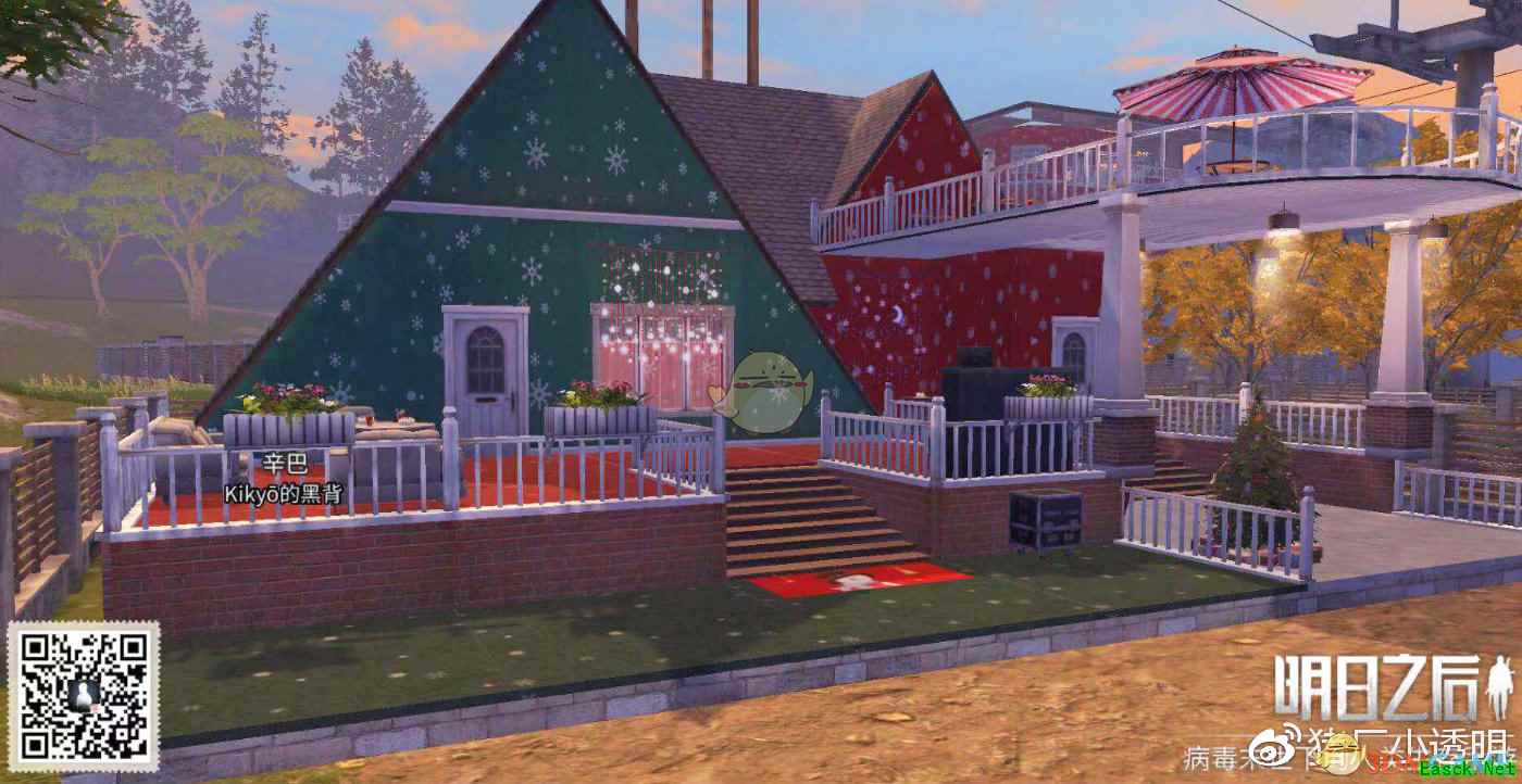 用窗做眼睛,门做嘴巴,再加上墙纸刚好有波浪纹,超级可爱!!!舔。 主人是多贝雪山的Kikyo,7级庄园,已经申请过在微博上分享了。具体的建筑分如下: (PS,想要看3000分以上房子的再等等,这些房子一般吧,都不太好看。)