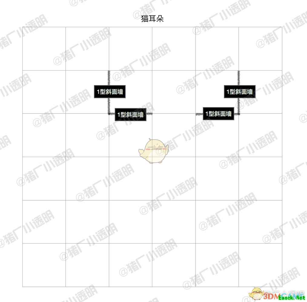 周五的晚上!我还在画图!简直被自己感动了。废话不多说,赶紧写完我好上线肝个痛快。本周还没分享过房型图,主要是放假太多我忙不过来了。今天挑了一套可爱的猫咪房子,我见过不少用1型斜面墙做猫头的,这套是最传神的~