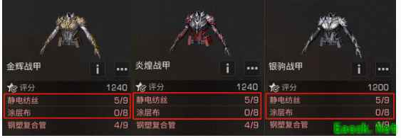 三、涂层布的作用 随着版本提升、感染体日益强大,90级护甲能为幸存者提供更强的防护能力,从而在末世生存中更加游刃有余。 涂层布同护甲工新专属半成品的静电纺丝一样,是制作90级护甲(金辉战甲、炎煌战甲、银驹战甲)的必备材料,适用于90级护甲的制作。