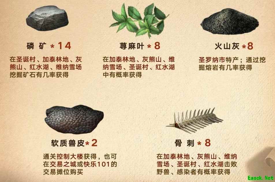 《明日之后》第三季涂层布制作方法一、配方获取 当庄园等级升到18级,将自动解锁涂层布配方。特级护甲专家学习【涂层布】技能后制作时有概率额外获得一个。 配方:涂层布=磷矿*14+荨麻叶*8+火山灰*8+软质兽皮*2+骨刺*8 二、合成材料 1.磷矿 在圣诞村、加泰林地,灰熊山、红水湖、维纳雪场挖掘矿石有几率获得。 2.荨麻叶 在加泰林地、灰熊山、维纳雪场、圣诞村,红水湖中有概率获得。 3.火山灰 圣罗纳市特产;通过挖掘熔岩有几率获得。 4.软质兽皮 通关控制大楼获得,也可以再交易之城或快乐101的交易摊位购买。 5.骨刺 在加泰林地、灰熊山、维纳雪场、圣诞村,红水湖击败野兽、感染者有概率获得。