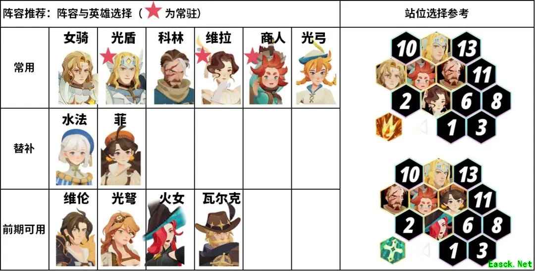 光盾,维拉,商人为常驻英雄,属于必不可少的英雄,有的话一定要上场。 其次也可提升英雄品阶与等级来提升英雄战斗力。较高的战斗力也可以顺利通关副本。