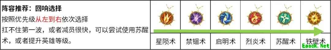 剑与远征启程里面有很多的塔可以去爬,今天给大家带来的是游戏里面的光辉之塔阵容,还有小伙伴不清楚光辉之塔阵容是什么,那么下面就是相关的内容. 剑与远征启程免费抽卡下载地址:点击查看 剑与远征启程光辉之塔阵容英雄与阵容推荐: 在回响的使用中,我们推荐按照以下的顺序选择。正常情况下我们会选择星陨术。假如对面控制较多也可以使用禁锢术,我方容易减员可以采用苏醒术等。