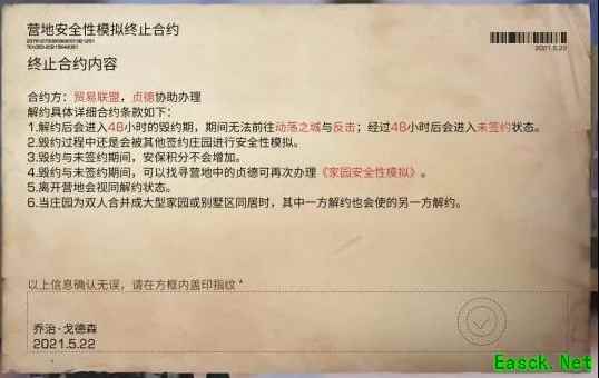 《明日之后》动荡之城解约方法一、在哪解约 如今联盟推出了《家园安全性模拟》合约,签订了合约的幸存者可参加动荡之城。 该条约需要到营地直升机贞德处办理,同时签约之后若想解约,也需要到此处解约。