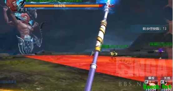 BOSS血量下降到55%之后,金龙就会出现。被金龙的吐息和金球攻击到,会强制丢弃玩家手中的武器。(最讨人厌的龙,打着打着武器啪!没了!)