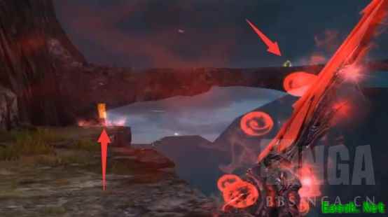 通过传送门之后,走到悬崖尽头,就可以开启第二个BOSS的挑战了。