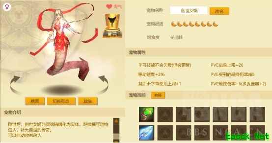 8星双形态12词条宠物。是现版本通过副本获取难度较大的宠物。其在女娲补天通关包中可以开出,但是产出量相对白虎宠物而言,比较低。所以玩家们通常以在游戏内开出女娲宠物蛋而引以为傲,可谓天选之子啊。笔者的女娲是保底的!保底的!保底的!