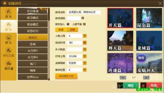补天篇的房间创建位于副本-创世纪类目下的女娲补天。可选择普通及困难两种模式,玩家根据需求自行选择即可。