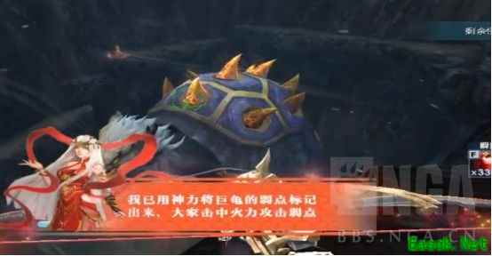 进入落点平台,玩家需要集中火力来攻击巨龟北部出现的甲刺。只要亮起的甲刺可以攻击。