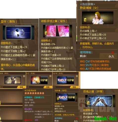 终极·伊赫之舞在反恐纪元-楼兰副本中刷取永久,终极·伊赫之舞的属性提升是非常可观的,星伴使用A类橱窗兑换券就可以换到,对于我们的新老兵及平民微氪玩家来说,星伴的属性属于T1级别的腕饰。群星璀璨套装作为十二神殿副本产物,其均衡的属性也会提升玩家在副本中的体验。 进阶装备:末日侵袭三件套 组成装备由:末日(背景)、侵袭(臂章)、守护者(称号) 此套装备出自于副本末日侵袭,由于其出色的属性而被广大玩家喜爱。套装拥有者PVE15点血量上限的加成,大大提升了玩家在副本的存活率。其次更是拥有PVE主武器伤害+2(多发+1)的强力输出词条。更是增强了其在PVE玩家心目中的地位。也为玩家在副本的输出表现提供了强力的支持。 恶鬼之握 创世纪玲珑篇的产物,刷副本的时候必带装备之一。其PVE最终伤害增加的属性可以为玩家的PVE伤害带来新一层次的提升。 宠物:RAY