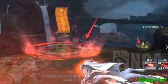击杀小怪之后,会来到地图特色点,传送符阵。这个地方很多玩家都有自己的简洁和快速跑法。这里笔者提供一下自己的跑法,供大家参考。 符阵的左右是将玩家向左右弹,或者向前弹起。 笔者一般采用的方式是第一个红色的符阵踩上去,弹到左侧岩壁,然后沿着一直沿着左侧的岩壁行走,直至到达最后的黄色石头,进入传送门。