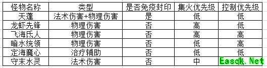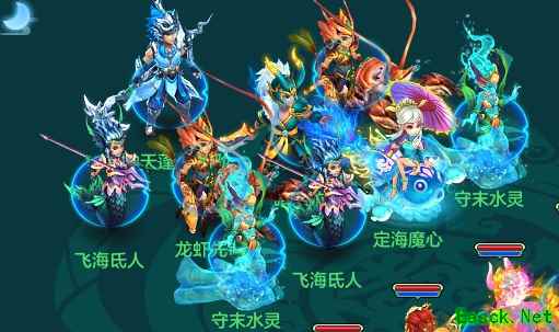 第六关: 本关敌人拥有高额物理伤害职业。再配合主怪天蓬的法术群秒技能“天河净水”可以清除己方物理系职业使用后需要休息一回合的状态。对我方的所有玩家都会造成很大的压力。打法思路上我们优先封印,暗水统领,随后对龙虾先锋飞海氐人守末水灵进行逐个封印点杀。顺序为击杀两个龙虾先锋一个飞海氐人后,击杀守末水灵,击杀完成后,继续在保持暗水统领,飞海氐人的封印。按部就班的击杀剩下的暗水统领、飞海氐人、龙虾先锋即可。剩下定海魔心与天蓬最后击杀。