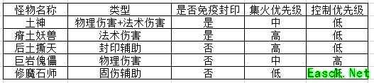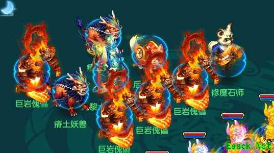 第四关: 本关是高物理点杀伤害,打法思路为优先击杀瘠土妖兽、后土撕天这两个目标,封印职业焚影巨岩傀儡。瘠土妖兽、后土撕天击杀完毕后集火主怪,击杀后在慢慢清理巨岩傀儡,最后击杀修魔石师。此关卡要求比较高的是输出职业与5个宠物能否快速击杀瘠土妖兽、后土撕天两个怪物,击杀的太慢会对血线造成较大的压力。