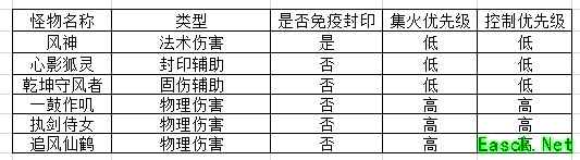 第二关: 本关最大难点为主怪释放的巽风魔阵会使所有玩家的速度混乱和高额的物理点杀与物理AOE伤害。打法思路为最优先封印集火“一股作叽”。击杀后在封印、集火执剑侍女或追风仙鹤均可。最后处理守封者、心影狐灵、主怪。