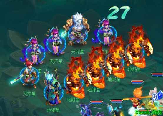 当你可以很轻松的挑战普通天罡后也可以开始尝试挑战魔化天罡了,对于魔化天罡难度相比普通天罡的难度最不一样的一点就是魔化天罡会不停召唤宝宝的,所以一定要达到伤害压制让人物一直倒地没时间出宝宝才能够挑战成功。 相对于普通天罡来说,魔化天罡的打法略有不同,因为魔化天罡的特性是无限出宝宝,所以要人不倒下的情况下只打宝宝是没办法挑战成功的,针对物理门派进行集火是很有效的方法,第一回合集火目标人物的的宝宝清理掉,然后第二回合就开始一直集火人物就可以了。 队伍配资方面选用三输出一奶一封系的常规阵容即可。 3.神化天罡
