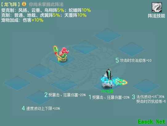 龙飞阵站位效果 风扬阵有加伤和提速两种站位效果,如果己方速度领先,则考虑优先解决增伤位置的生肖单位;若己方速度落后,则优先解决提速站位的生肖单位。