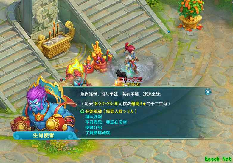 2.每天18:30-23:00,傲来国、女儿国生肖使者处可挑战3星及以下的生肖。