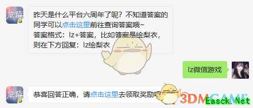 龙族幻想2019年8月17日微信每日一题的问题是:昨天是什么平台六周年了呢?回答正确可以获得天天抽好礼的机会哦,下面小编就给大家带来了龙族幻想8月17日微信每日一题答案,想要抽好礼的小伙伴千万不要错过哦! >>>小编推荐:每日一题答案大全 | 异闻攻略大全 | 男性捏脸数据汇总 | 捏脸数据女大全 | 全职业加点攻略汇总