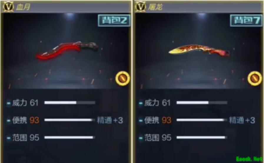 在穿越火线游戏中,满精通的近战武器血月和屠龙的性能基本一样,屠龙存在生化模式伤害加强的技能,血月在12小时模式中,作为开局武器使用(可带入血月模式),外观上血月更加弯一点是红色的外观,而屠龙是金色的外观。