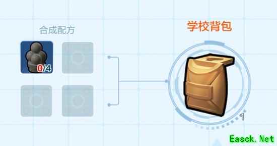 学校背包 物品介绍: 最基础的背包,可以增加背包容量 物品解锁: 4个羊毛通过工作台进行合成制作 制作方法:增加五格人物背包容量 |
