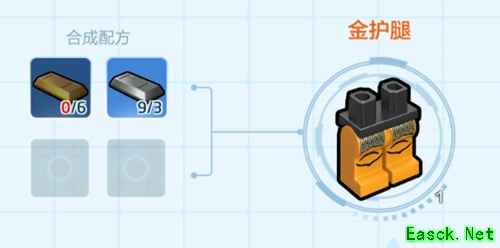 金护腿 物品介绍: 金质的护甲,可抵御物理伤害 物品解锁:获得金锭 制作方法:消耗6个金锭,3个铁锭在工作台上合成 |