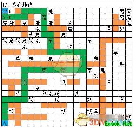 【版本更新可能会带来变动,以下数据仅供参考】 绿色为通关路线,黄色代表障碍物 永夜地狱,出口左上 boss数据如下 妖王:血量1309500;攻击299000 鬼王:血量1309500;攻击328900 蝙蝠:血量2619000;攻击269100 以上就是图13永夜地狱的通关地图及BOSS数据,希望能帮助大家更顺利的通关。更多精彩攻略敬请关注手游。 |