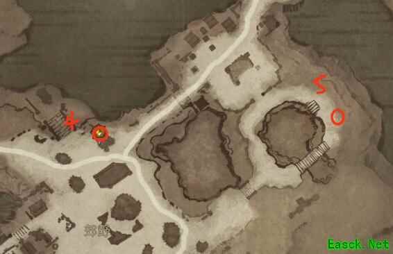5个民兵位置分别为:主线一个,王后墓两个(沿左边走连着),郊野两个 具体点位如下图 1、2、3号民兵位置: