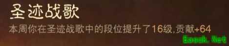 贡献度分数计算规则:圣迹战歌段位等级共有16级(青铜1-传说),每提升一级会获得4分。