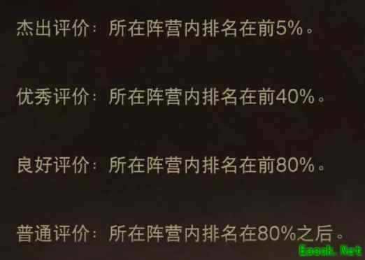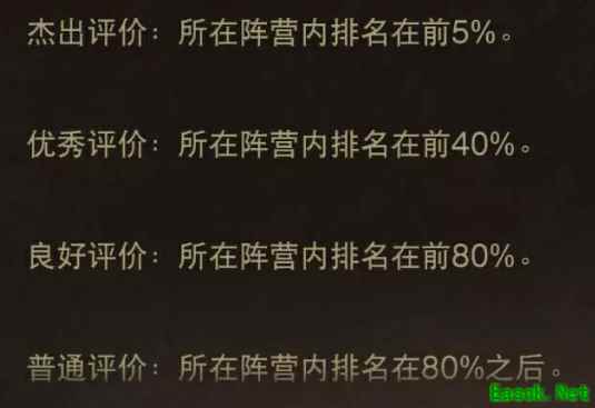 你越早到达高位阶,战歌越先达到传说,那么你的贡献度排名就会越靠前。 保证每天三把战歌以及每天的暗影会位阶任务必做,贡献度评价也是在优秀以上。 4、影响力评价说明