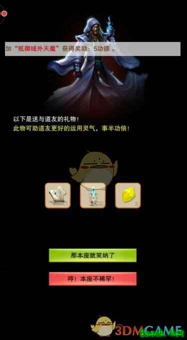 奖励还是不错的哦!一本《五气朝元》的功法,200功德以及3*10000灵石。
