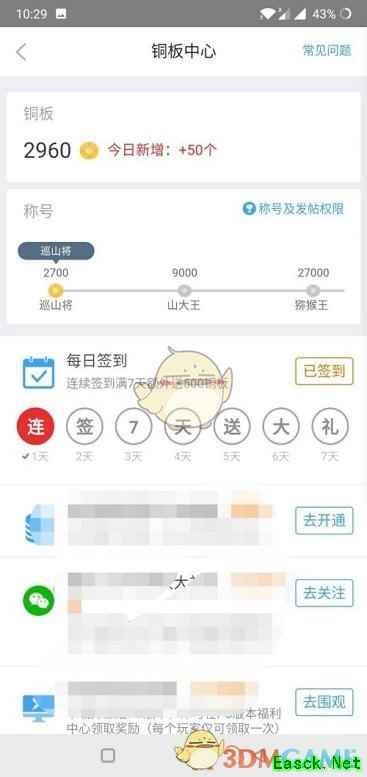 5、每天的登陆都是可以获得铜板的(如图所示)。