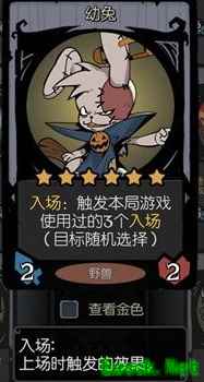 月圆之夜新手流派推荐:阵营选择:战士、自然族、野兽、龙 一、入场流阵容核心:(主要是为了得到钱) (1)寻宝狗头人(中立:入场效果触发3次(金色效果)) (2)猫头鹰(野兽:入场:获得1张随机入场随从)、孢子战士(自然族:入场:获得1张随机自然族牌)、龙语者(龙:入场:获得1张随机1星随从);其中猫头鹰和孢子战士配合寻宝狗头人和幼兔最佳; (3)幼兔(野兽:入场:触发本局游戏使用过的6个入场(金色效果)) 在满级以及阵容中寻宝狗头人出站的情况下,放3张入场牌(猫头鹰、孢子战士或龙语者),然后开始放幼兔,你会最多得到6*3=18个随从,其中有各种合成金色并得到一张奖励牌,然后奖励牌中会有几率继续出现幼兔,然后重复过程,你会得到无穷无尽的随从牌,你卖都卖不完,轻轻松松金币几百+。(这个时候再配合梦境之树(自然组:当你卖出1张随从牌你所有随从获得+2+2)你的属性轻轻松松上千,如果你有时间可以破万属性)。