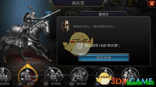 重骑兵——骑兵中的后排,克制"盾兵"及"弓手"、"弩手"但也被对方后排以及"枪兵"重骑兵"所克制,当对方前排死光之后,骑兵对后排的杀伤会加强。 |