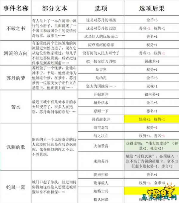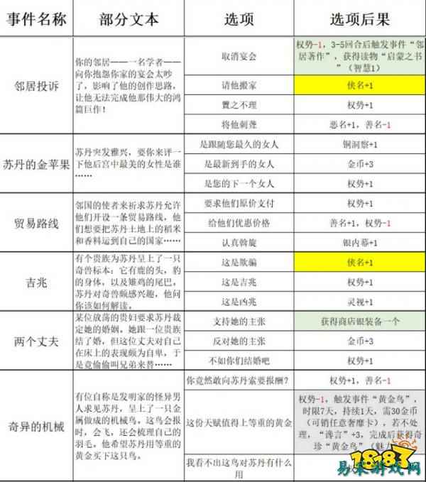 苏丹的游戏随机事件选项效果一览分享 苏丹的游戏随机事件怎么做
