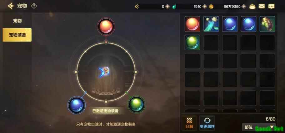 3、在这里玩家可以安装自己的宠物装备进行激活。