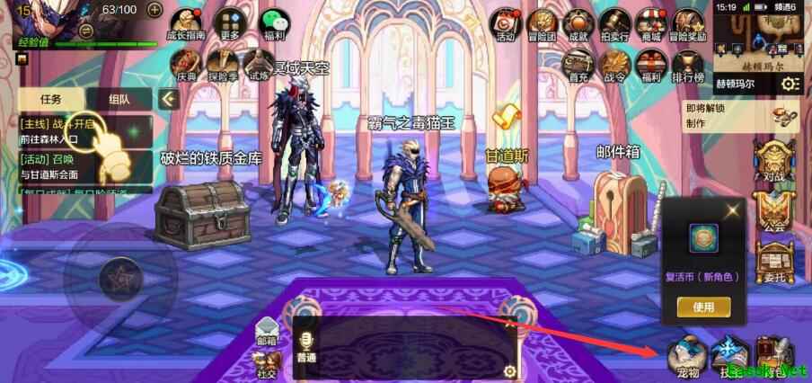 《DNF手游》宠物装备获取攻略:1、首先在游戏主界面点击右下角的宠物按钮。