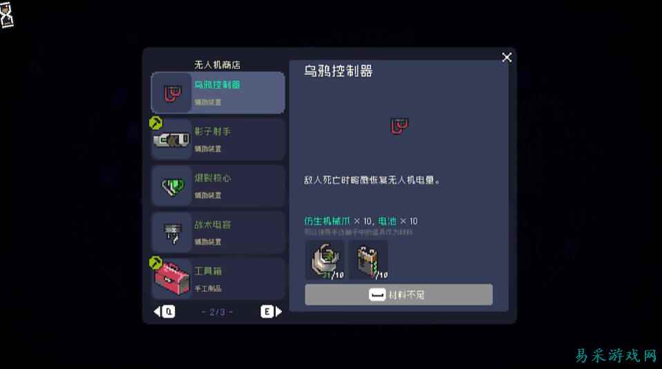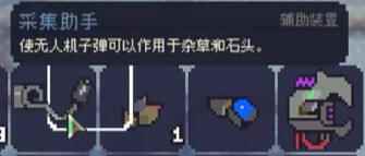 多洛可小镇中辅助道具可以给玩家带来额外的特殊效果,有些能够帮助玩家进行战斗,有些则能够帮助玩家采集,这些辅助装备的获取方法也不同,可以通过任务、制作、探索来获得,本次攻略为大家分享多洛可小镇中辅助道具的一览。 以下内容由bilibili用户川城子分享。 --------------制作获得-------------- 1.乌鸦控制器 敌人死亡时略微恢复无人机电量 仿生机械爪*10(河谷熊虫2007掉落),电池*10 2.影子射手 射击时有概率额外在发射一颗子弹(子弹呈红色,伤害由武器决定) 33式火控系统*10,黄蜂电子眼*1 3.爆裂核心 射出一定数量的弹幕后向外散射一圈弹幕(每10发弹幕稳定触发一次,伤害有武器决定) 网状菌目*10,黄蜂电子眼*1 4.战术电容 每次换弹后下次攻击命中时触发雷电效果并造成额外伤害(伤害由武器决定) 凝胶状能量体*20,避雷针*1 --------------宝箱获得-------------- 5.照明灯 提供夜间的照明效果 工程机库上方的宝箱获取。 6.电子分解者 击杀电子类怪物有一定的概率额外获取一个掉落物 河谷宝箱获取。 7.采集助手 使无人机可以作用于杂草和石头(破坏速度取决于受击的弹幕数量而非弹幕伤害)