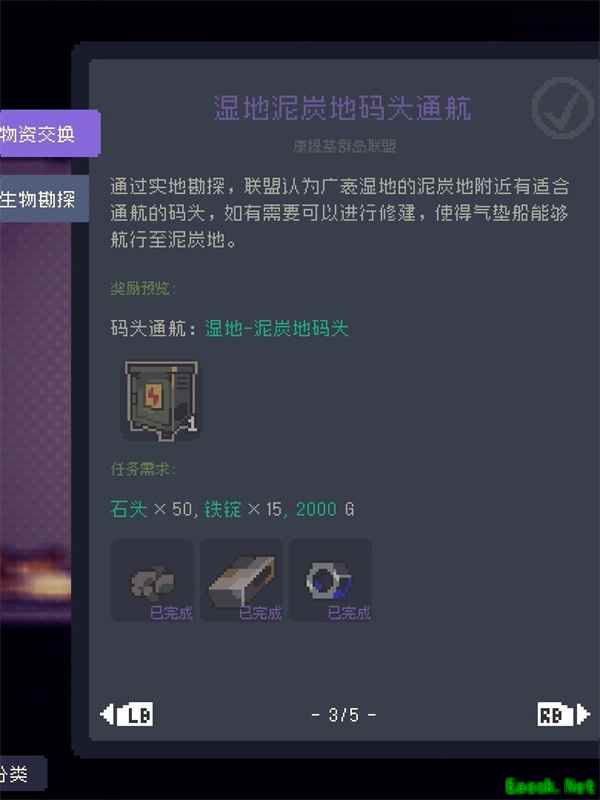 【湿地码头】 第三和第四个任务都是建造湿地的码头。(但基本只是为了完成第五个任务而做,基本没啥用)