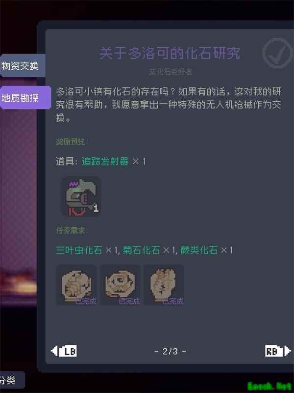 【化石研究】 第二个任务是需要你收集三种不同的化石。「菊石化石」和「蕨类化石」比较容易获取,重点在于「三叶虫化石」! 「菊石化石」在挖掘铁矿概率获得。 「蕨类化石」在挖掘岩石概率获得。(岩石是指石头上带有一点点纹路且呈现三角形的石头,硬度比一般石头更高),「达达」概率售卖。 「三叶虫化石」这个化石最为重磅,目前猜测获取方式是挖掘金矿概率获得!除开上述这种不大理想的获取方式,另一种获取方式是通过与女巫的交易获得。 「莲花池的女巫」在湿地的洞穴中有隐蔽入口可进入莲花池,每天的18:00女巫会在莲花池左侧出现,出售的商品中概率刷新「三叶虫化石」 看到了就买!看到了就买!看到了就买!