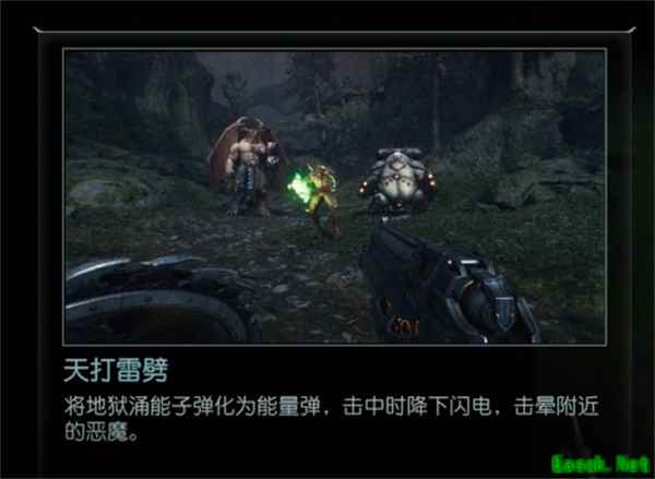 链接技能效果: 加长型弹夹:自动炮塔的持续时间延长。 生命汲取器:被自动炮塔伤害的恶魔会掉落生命值。 高速射击:自动炮塔的射速与每发伤害提升。 天打雷劈(第十四章解锁) 效果: 将地狱涌能子弹化作能量弹,击中时降下闪电,击晕附近的恶魔。