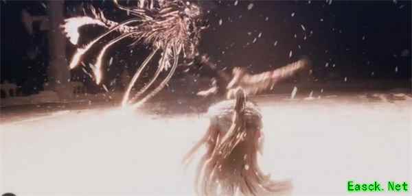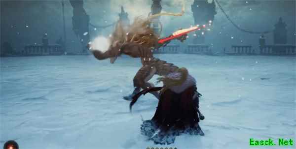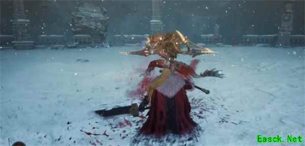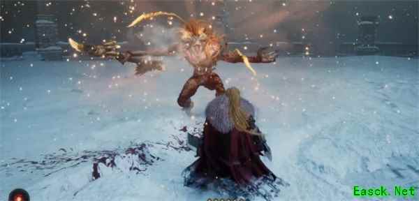 4、在他侧面打,注意boss会把武器丢出去,三分之一血时候场地乱跳向前突刺(连挡三次刀把刀打碎)打到二阶段;